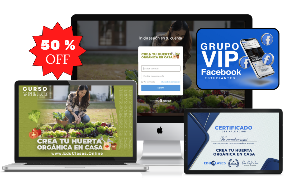 Más de 32 clases en video y más de 2 horas de contenido práctico, donde aprenderás desde cero a crear, dominar y mantener tu huerto como un experto.